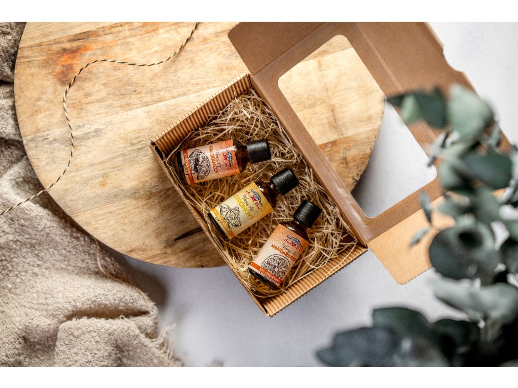 Balíček plný vůně obsahuje tři druhy vonných olejů, které můžete použít jak do aroma lampy nebo difuzéru a krásně tak provonět váš domov a navodit si příjemnou atmosféru. Je také vhodný jako ideální dárek pro milovníky vůní.