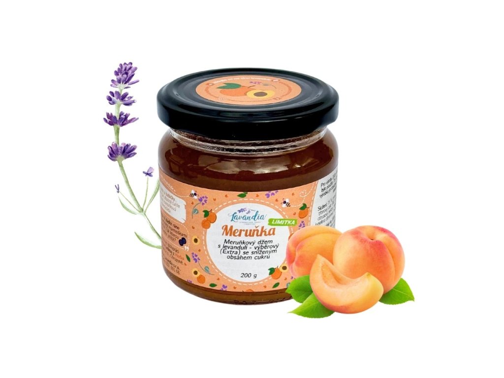 Meruňková marmeláda s bio levandulí je výbornou ovocnou pochoutkou. Při výrobě bylo použito výběrové ovoce a přírodní suroviny, bez chemické konzervace a stabilizátorů.