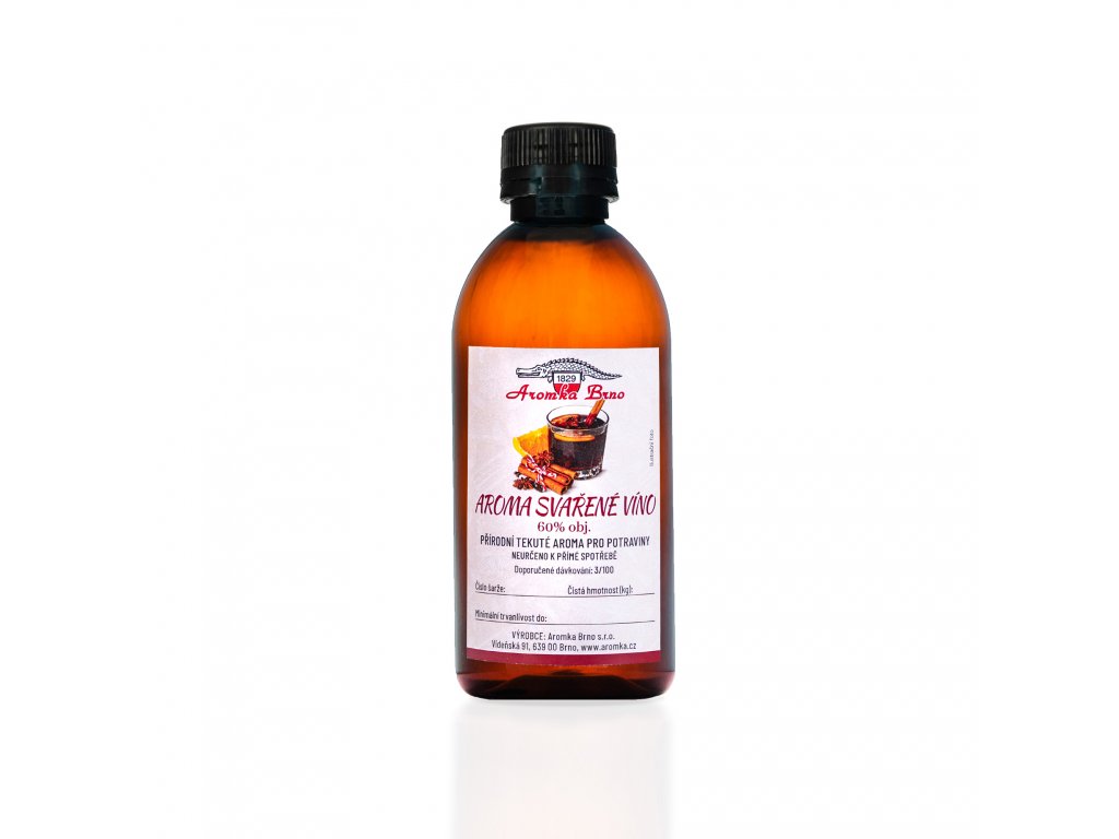 Svařené víno aroma je přírodní tekuté aroma na lihové bázi, vyrobené macerací koření (hřebíček, citron, skořice) ve směsi lihu a vody. Objem alkoholu aroma je 60% obj.